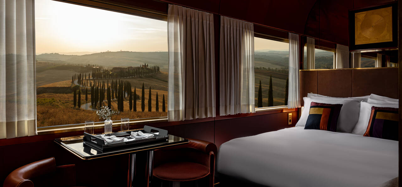 The La Dolce Vita Orient Express marks a new chapter in the history of luxury rail travel. Owned and run by the original Orient Express brand, this train has reimagined the golden age of travel through a distinctly Italian lens. Unlike the 1920s Art Deco stylings of its Venice Simplon sibling, La Dolce Vita takes inspiration from the bold design and cultural energy of 1960s and 70s Italy. The result is a train that feels both nostalgic and contemporary – a celebration of Italian style paired with the pleasures of slow travel. Journeys traverse Italy’s most captivating routes, from the Renaissance treasures of Florence to the coastal charm of Portofino, the ancient cave dwellings of Matera and even the island beauty of Sicily. Each itinerary combines time on board with immersive off-train experiences, so you might explore Rome’s timeless landmarks with an expert guide, taste wines on the slopes of Mount Etna or sail past pastel-hued villages on the Ligurian coast. With only 62 passengers on board, each journey feels boutique and exclusive, where the focus is as much on the places you’ll visit as the atmosphere along the way. Dining is a central part of the experience, with menus created in collaboration with leading chefs and paired with regional wines selected by expert sommeliers. From breakfast in your cabin to aperitivo in the bar car and refined dinners in the restaurant, every meal showcases Italian hospitality at its best. Service throughout is discreet yet attentive, adding a final flourish to what is not just a train journey, but a celebration of Italy’s artistry, culture and landscapes.