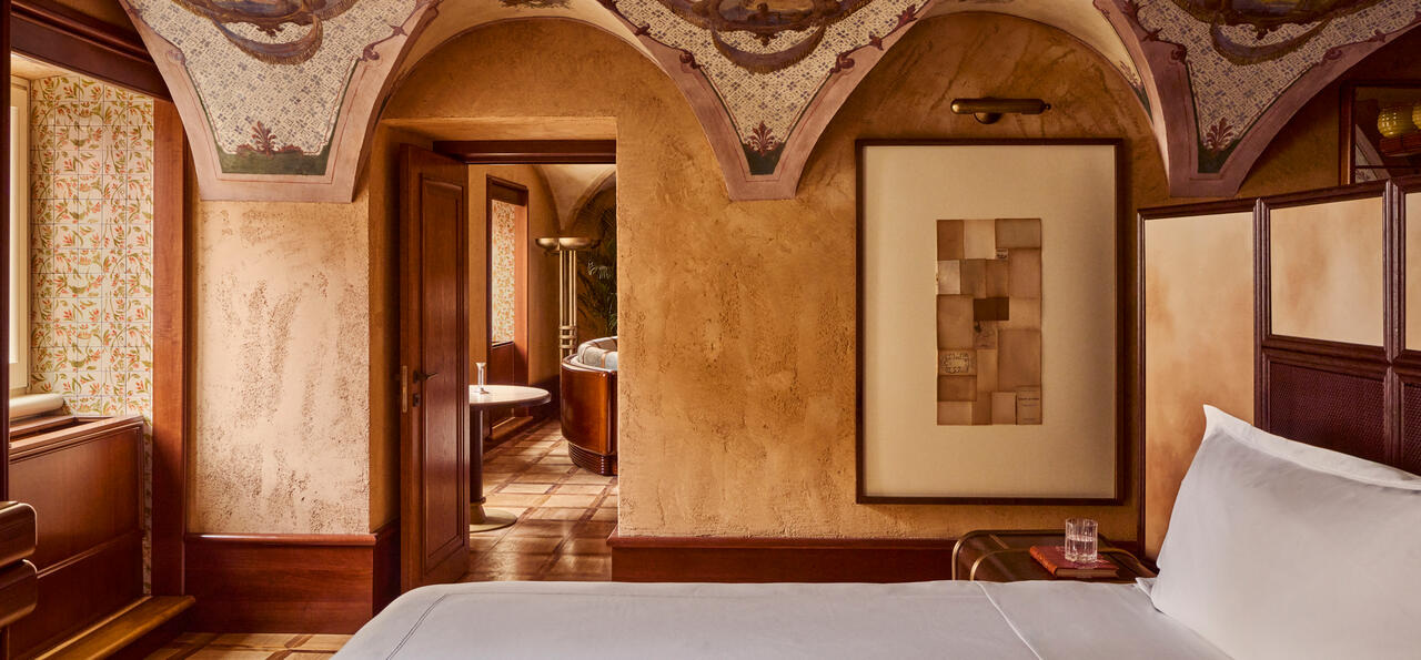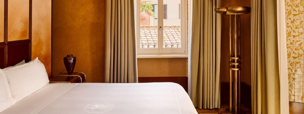 Hugo Toro’s immersive interiors recall the golden age of train travel, the 93 rooms and suites echoing first-class compartments through glossy woods, richly veined marbles and bespoke pieces such as travel trunks moonlighting as nightstands. Beds are dressed in Rivolta Carmignani linens, once used on Orient Express trains, and many rooms look out over the Pantheon and piazza, while others open onto private terraces. Four signature suites provide an opulent upgrade with sumptuous living spaces, frescoed ceilings and some of the hotel’s most sought-after views.